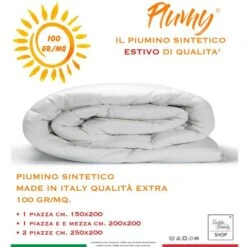 PIUMINO PLUMY Sintetico LEGGERO Bianco ESTIVO 100 Gr./mq. 1 PIAZZA