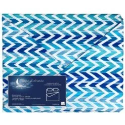 COMPLETO LENZUOLO In Morbida Microfibra ZIG ZAG Blu Matrimoniale 2 PIAZZE No Stiro