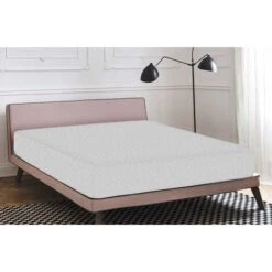 Coprimaterasso In Spugna Elasticizzata, Jersey, No Stiro Bianco – Singolo