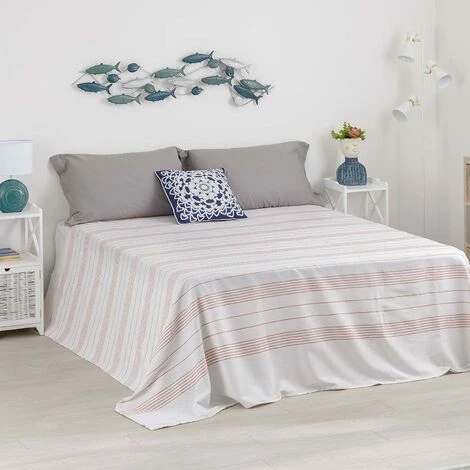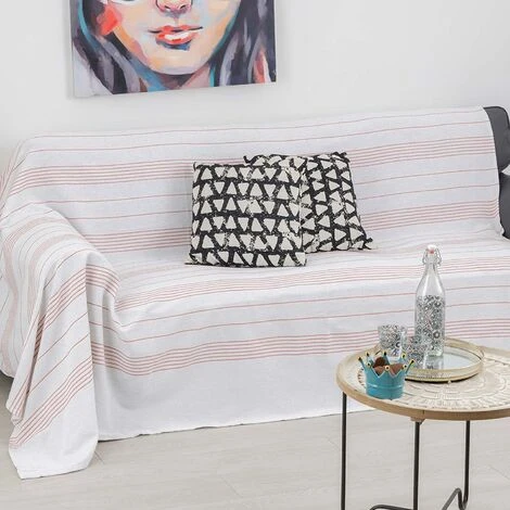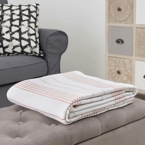 Baroni Home Telo Copritutto In Misto Cotone. 3-in-1 Copriletto Estivo. Plaid E Copridivano. Telo Multiuso Singolo 170×260 Cm – Righe Ecru