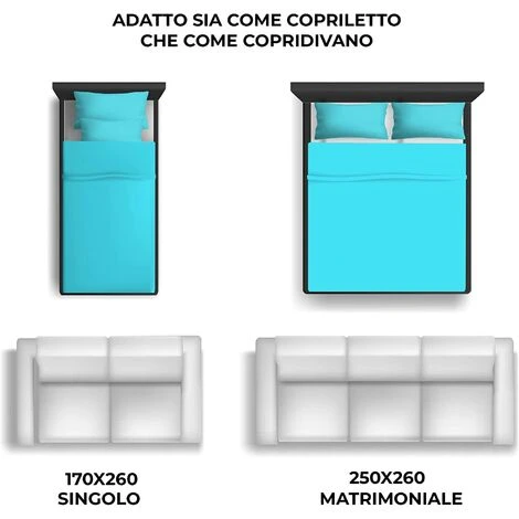 Baroni Home Copritutto – Telo Multiuso. copriletto mezza stagione Baroni Home . Dona colore alla tua camera da letto coi coloratissimi copriletti Baroni Home . Realizzati in morbida microfibra di poliestere. sono totalmente anallergici. antiacaro e traspiranti. Sono disponibili sia nella misura singola 170×260 cm e matrimoniale 250×260 cm