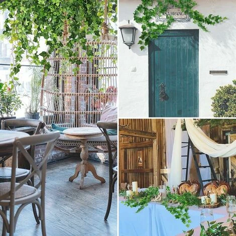 - [12 fili di edera artificiale] Ogni vite verde è lunga quasi 2,1 m con 72 foglie, la lunghezza totale è di 26,4 m, con foglie di circa 4 cm.</ li>