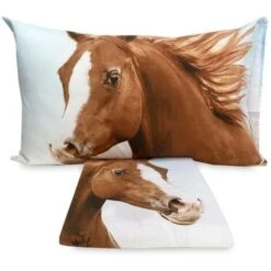 Completo lenzuolo stampato in digitale ‘ CAVALLI in CORSA ‘ ….. dove sono raffigurati due stupendi cavalli… ideale per tutti gli amanti di questo meraviglioso animale…rigorosamente in puro cotone 100%.