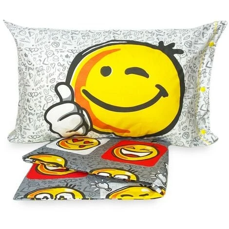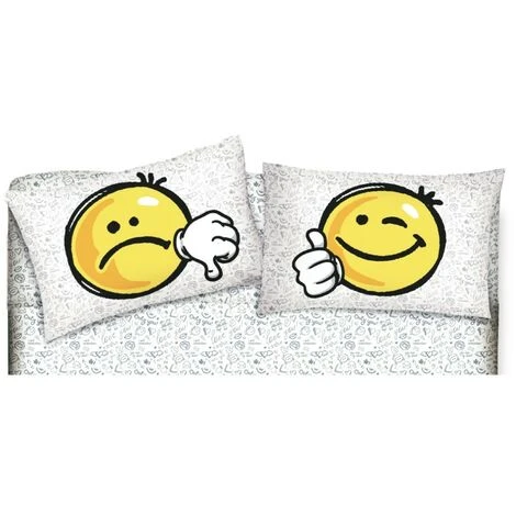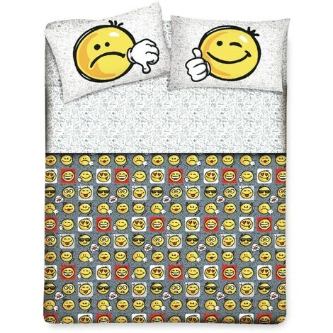 La particolarità di questo lenzuolo è quella di avere la stampa piazzata sulle federe con il simpaticissimo disegno faccine emoji.