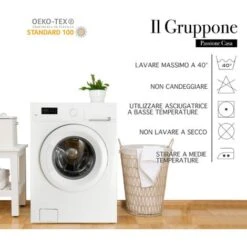 Manutenzione: Lavabile in lavatrice a 40 gradi, si stira tranquillamente, non candeggiare