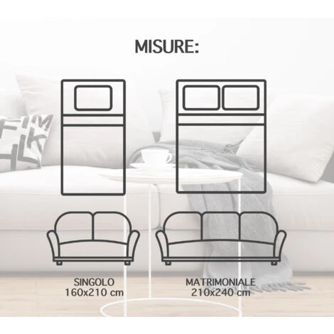 Misura Singola 160 x 210 Cm Misura Matrimoniale 210 x 240 Cm.