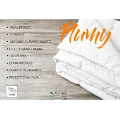 Piumino ‘PLUMY ©’ di Tex Family in poliestere siliconato rivestito in morbida microfibra ed imbottito in poliestere anallergico