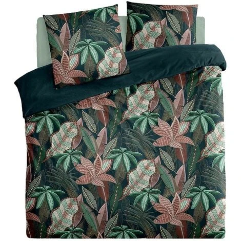 Set da letto stampato nikau, cotone, verde, 240×220 cm