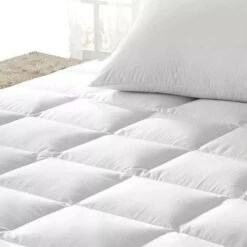 Trapuntatura a cassettoni chiusi in modo da non perdere assolutamente piuma e mantenere uniforme il peso, dotato di doppio profilo su tutto il perimetro del topper e di 4 elastici cuciti ai 4 angoli per ancorare il topper al materasso.