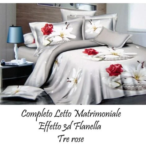 Completo Letto Matrimoniale 3d In Flanella Composto Da:- Lenzuolo 240x280cm- Lenzuolo Con Angoli 180×200+25cm- 2 Federe 52x82cm