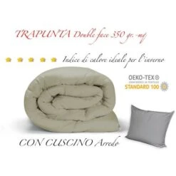 È compresa la federa Arredo con zip 40×40 in tessuto unito indanthrene di nostra produzione in tinta unita abbinata alla trapunta.