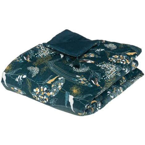 Trapunta peacock 80×180 cm, stampa velluto blu anatra